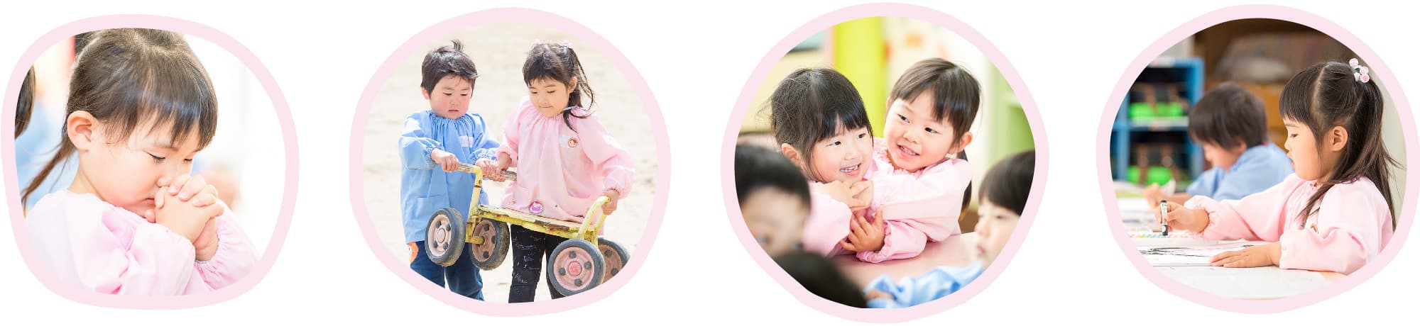 幼稚園はお子さまが初めて出会う学校です。しかし、小学校のように教科書があるわけではありません。幼稚園では、先生や環境そのものが教科書なのです。